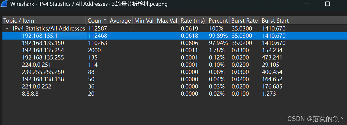 直接统计-查看 count 连接次数最多的可以判断是黑客 IP