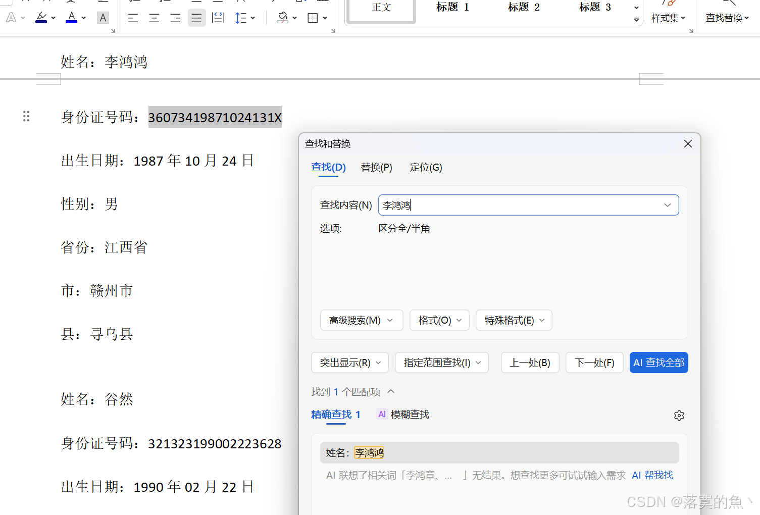 2. 客户"李鸿鸿"的身份证号是?(格式:身份证号,如遇字母须大写)