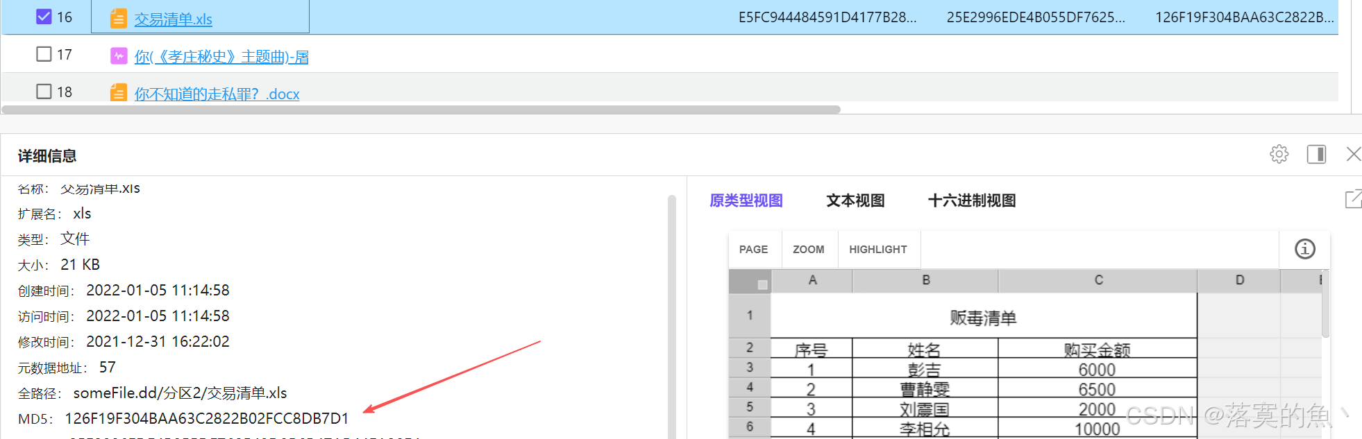 8. 嫌疑人的交易清单文件的MD5值是?(格式:字母大写);