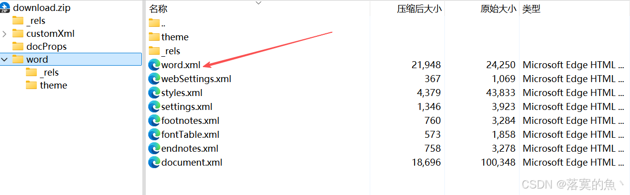 正常压缩包结构中没有,word.xml 放入 010 查看 发现文件头损坏