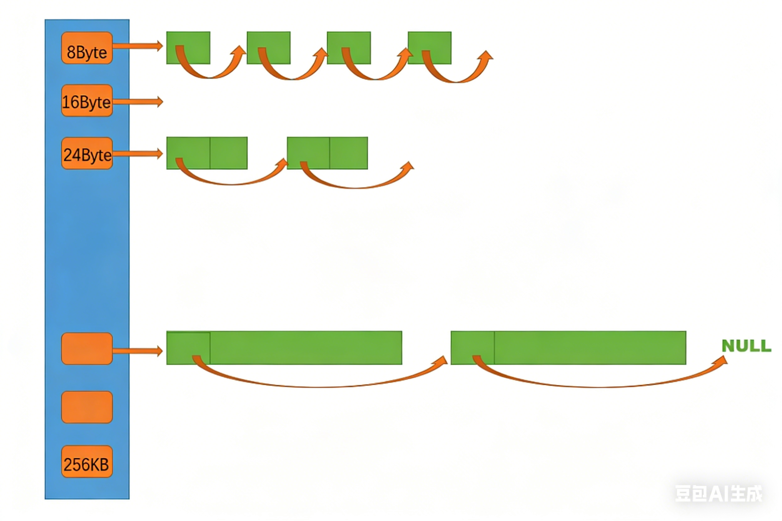 对应的桶后面链接的是对应大小的空间