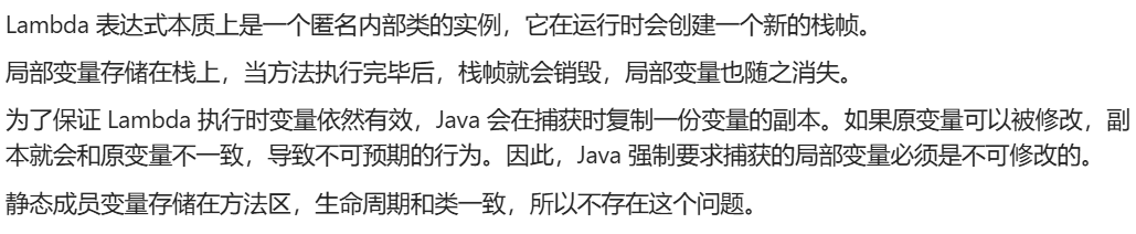 如果在Lambda表达式中使用局部变量会触发变量捕获