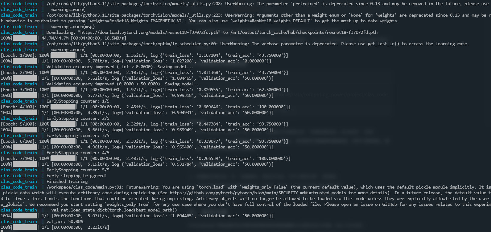 # 查看容器运行日志,验证训练是否正常启动