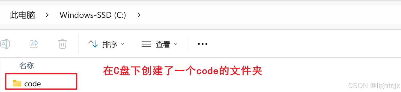 所以,首先我们可以在C盘下创建一个专门用于管理代码的文件夹。如图所示: