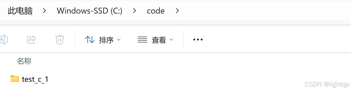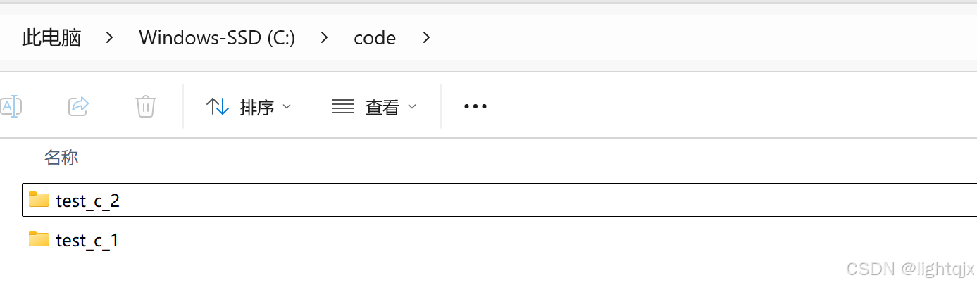 下面我们来演示一下,比如:我们在C:\code中创建一个新文件夹test_c_2,如图所示: