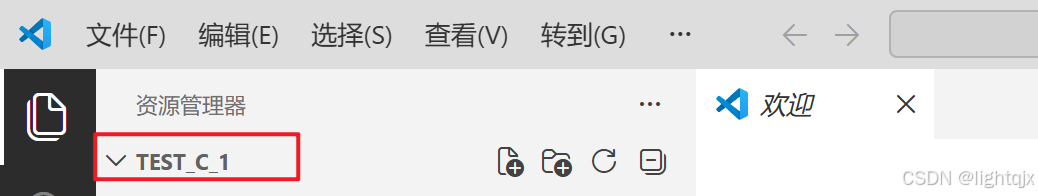 此时我们就可以看到这个test_c_1的文件夹被打开了,在VS Code中文件名称会显示大写的,如下所示:
