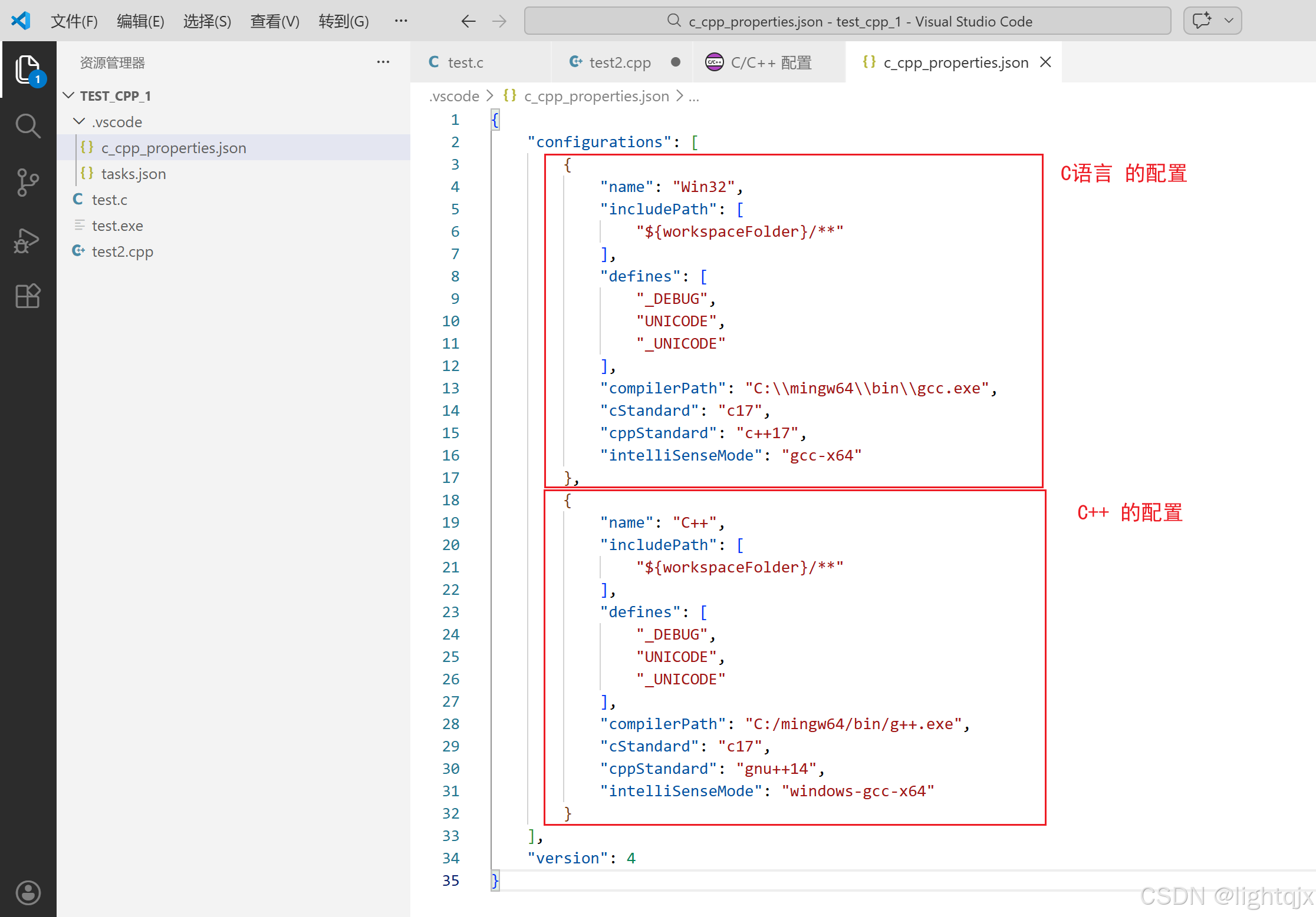 配置好后,这是再看c_cpp_properties.json,就会看到如下信息: