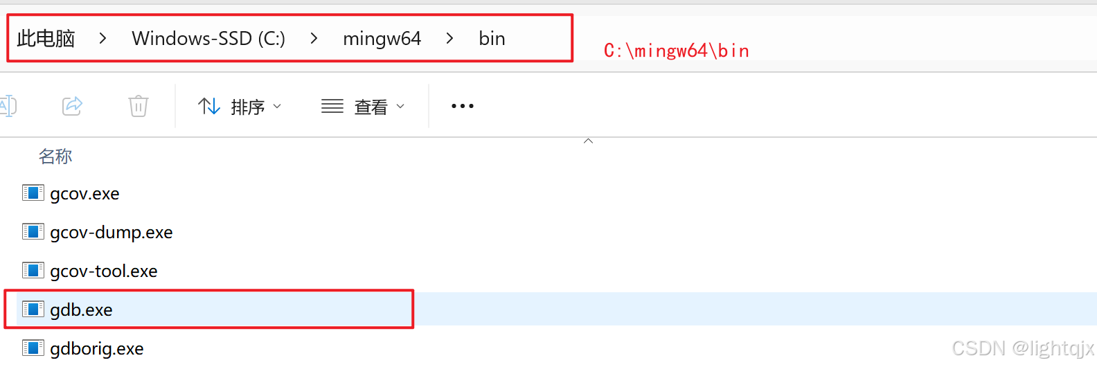 而mingw64中的gdb在C:\mingw64\bin下,如图所示: