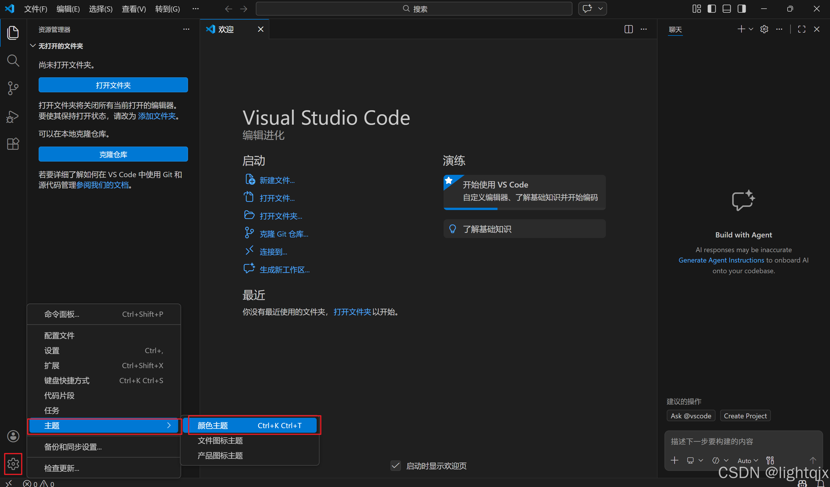 然后我们打开VS Code,在资源管理器中点击打开文件夹,如图所示: