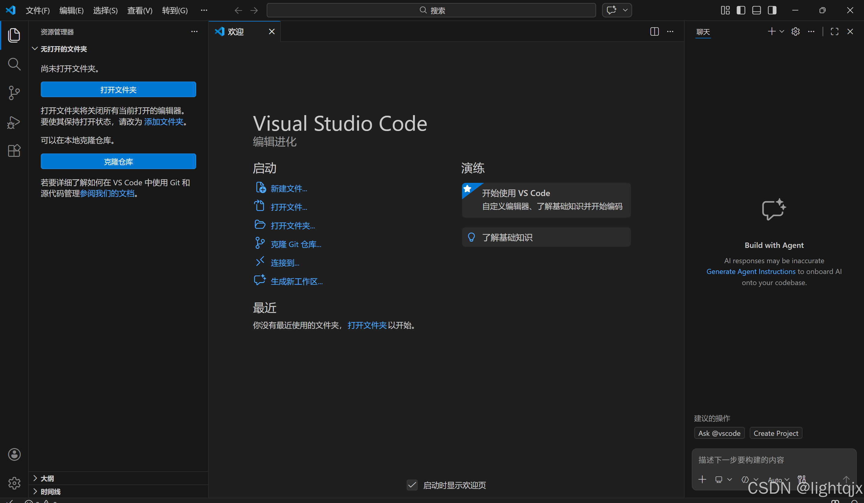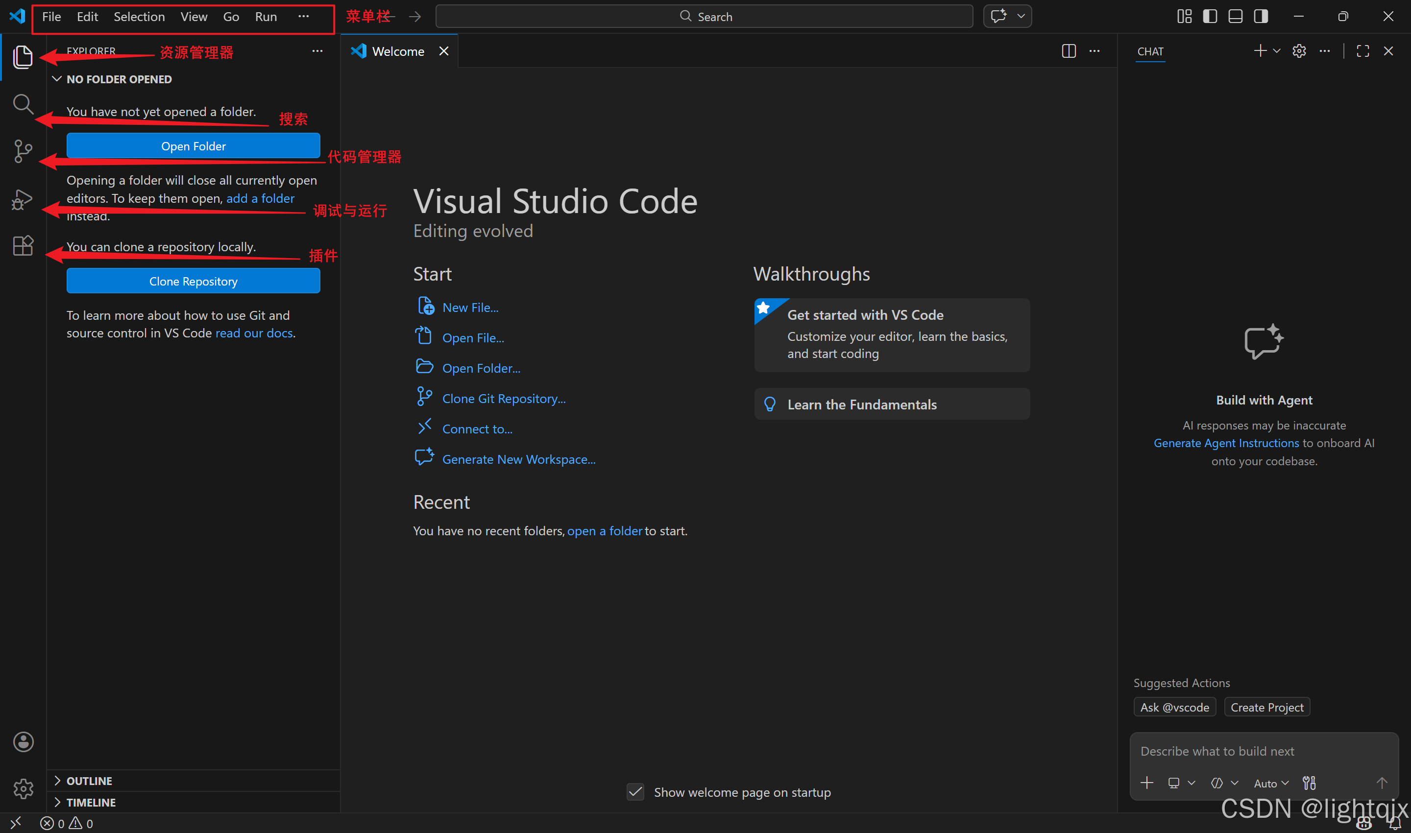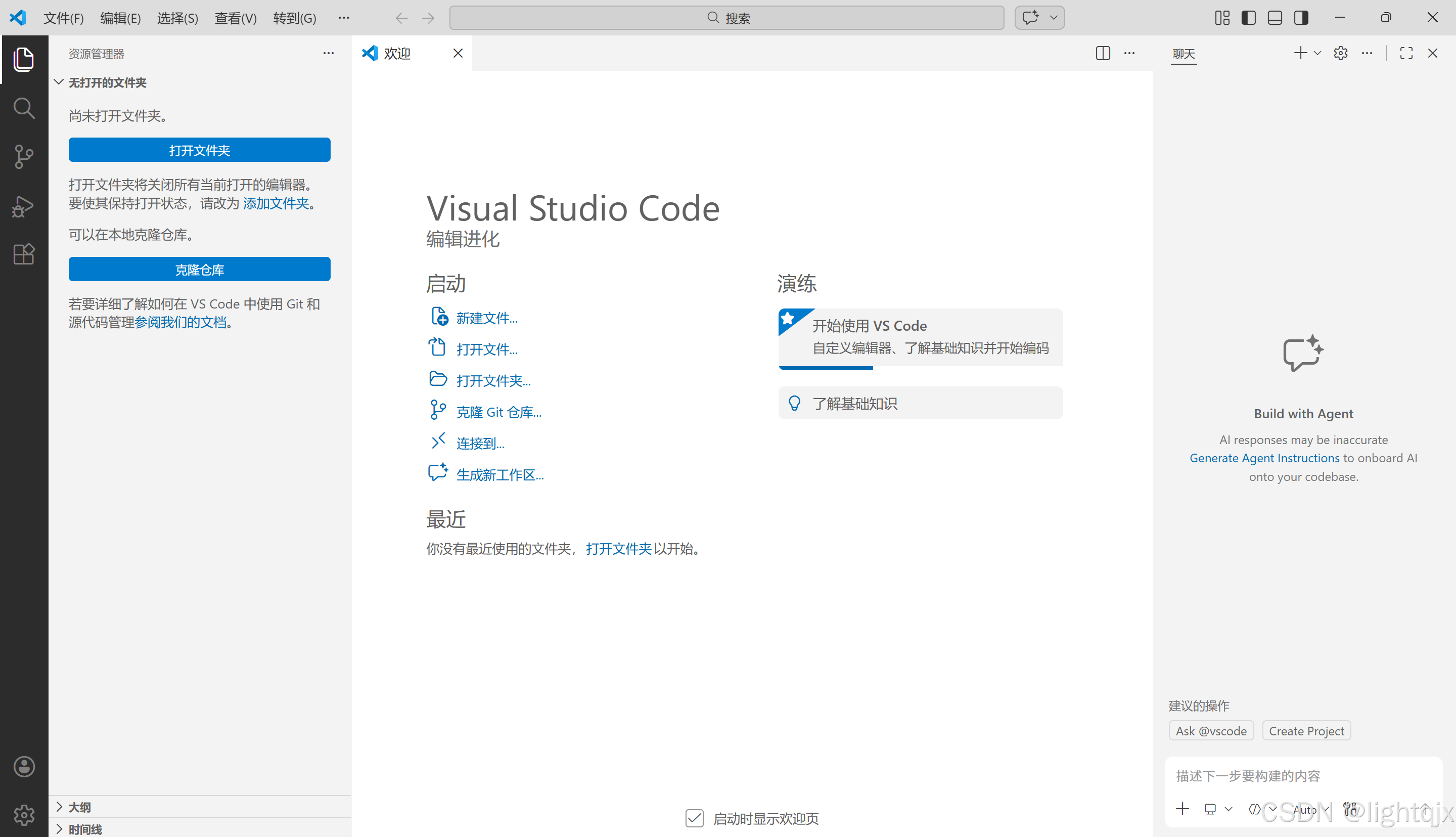 当我们第一次打开VS Code的时候,会出现如下界面,如图所示: