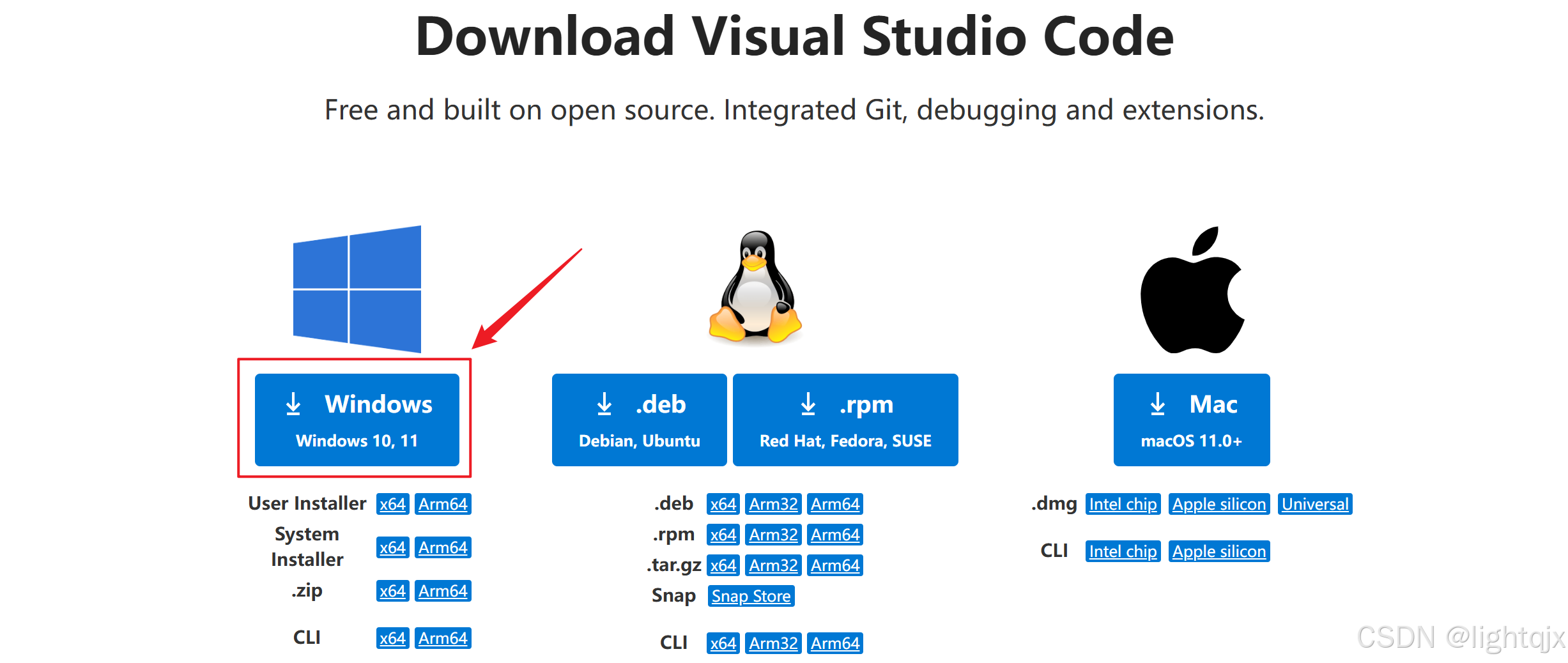 然后得到如下界面,因为我们是Windows系统,所以点击Windows的下载,如图所示: