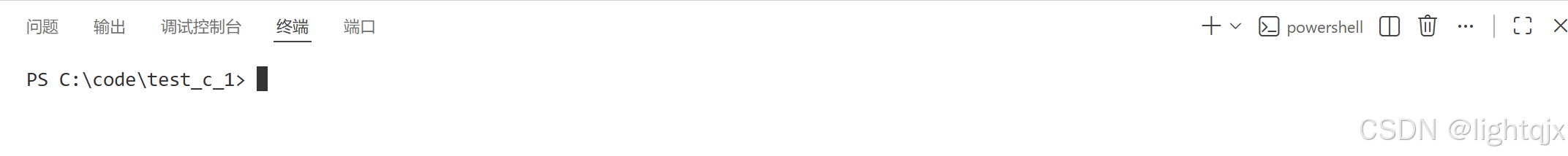 首先终止编译时的终端,然后按键盘的Ctrl + ` 快捷键,可以打开VS Code自带的终端,如图所示: