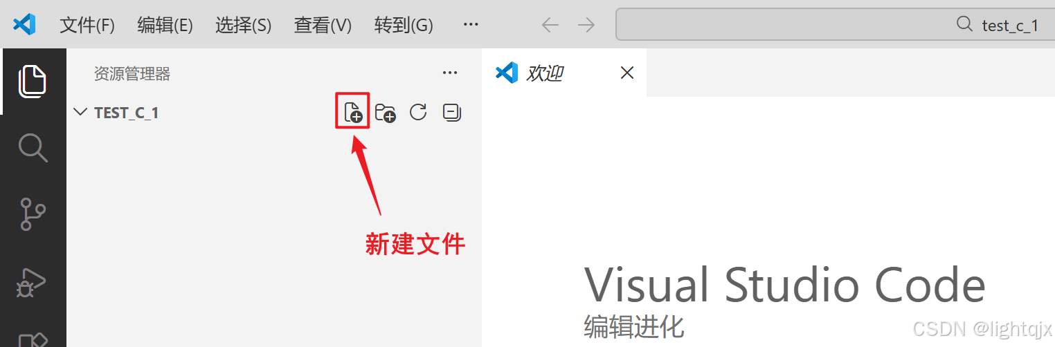 那么如果我们写代码,就可以在TEST_C_1的文件夹中新建文件即可,如图所示: