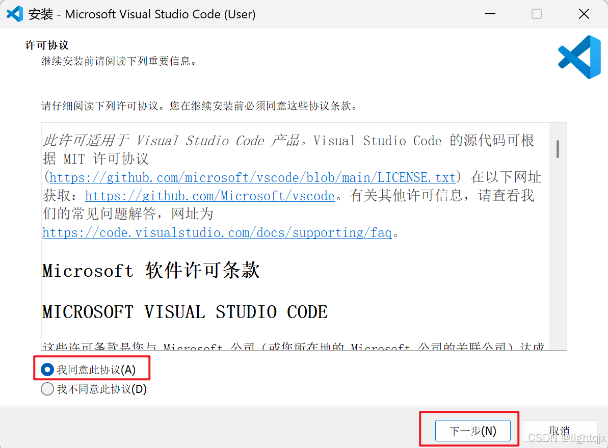 双击它,得如下界面,选择我们同意,点击下一步: