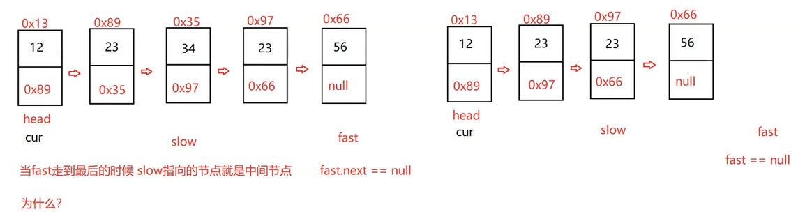 给定一个带有头结点 head 的非空单链表,返回链表的中间结点。如果有两个中间结点,则返回第二个中间结点 使用快慢指针解决