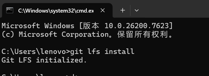 第一个lfs是相当于全局打开一次权限,我们可以在命令行中直接粘贴过来,回车