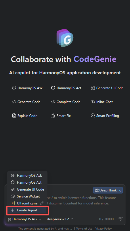 在 DevEco Studio 的 CodeGenie 面板 中,现在提供: