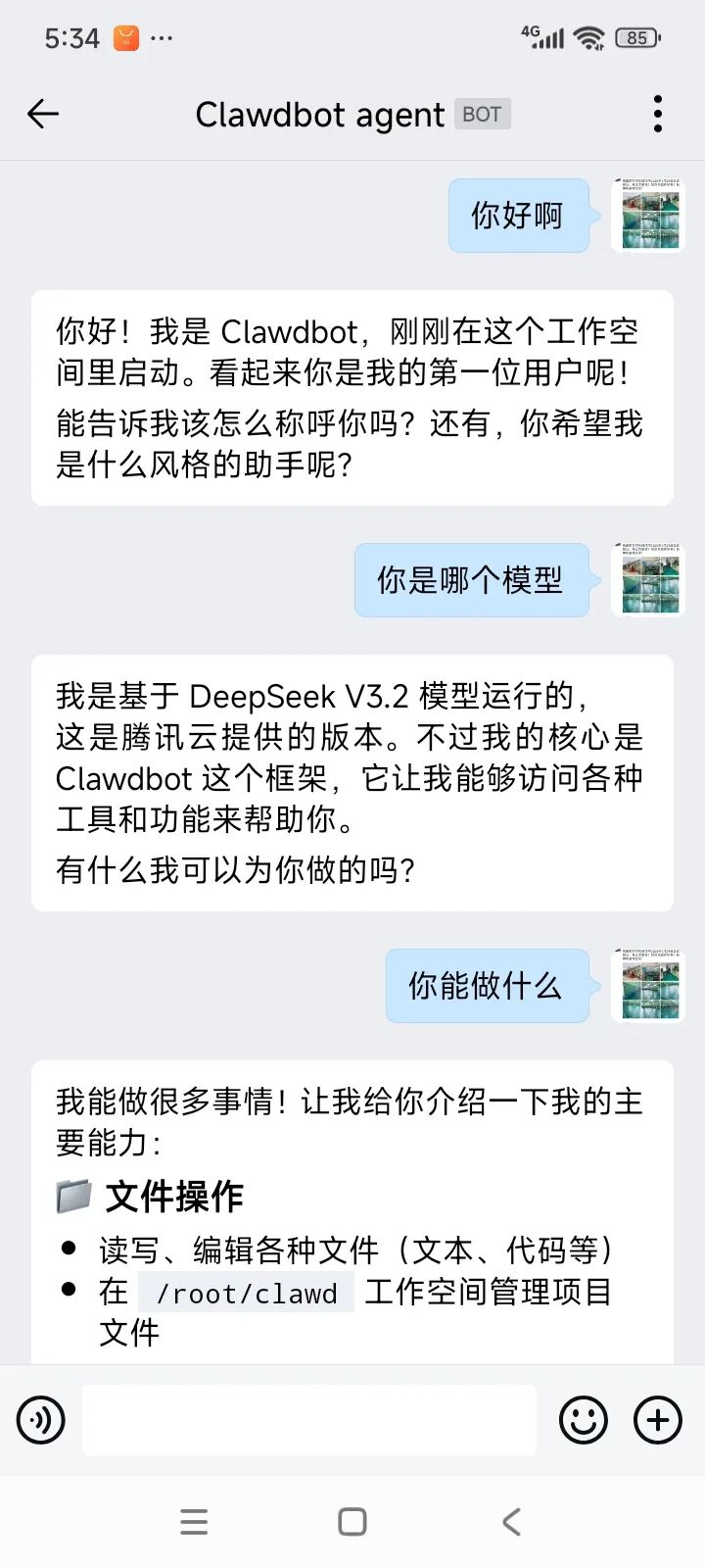 - 此时可在企业微信中正常对话。