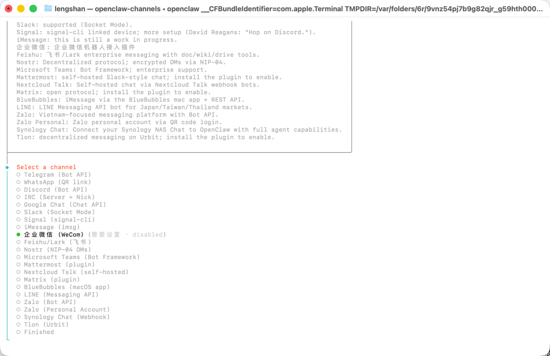 - 在select channel步骤,选择 channel 为企业微信