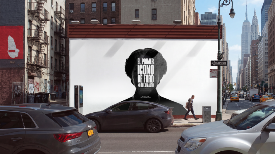 主视觉是一张对比度极高的克拉拉·福特的肖像照,搭配着醒目的排版设计,吸引观众去了解她在品牌早期所扮演的角色:在几乎无人相信亨利·福特的愿景时,她给予支持并坚定地站在他身后。