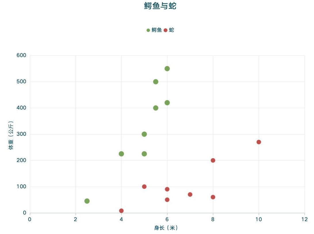 这是一组鳄鱼与蛇的2维数据(身材、体重):