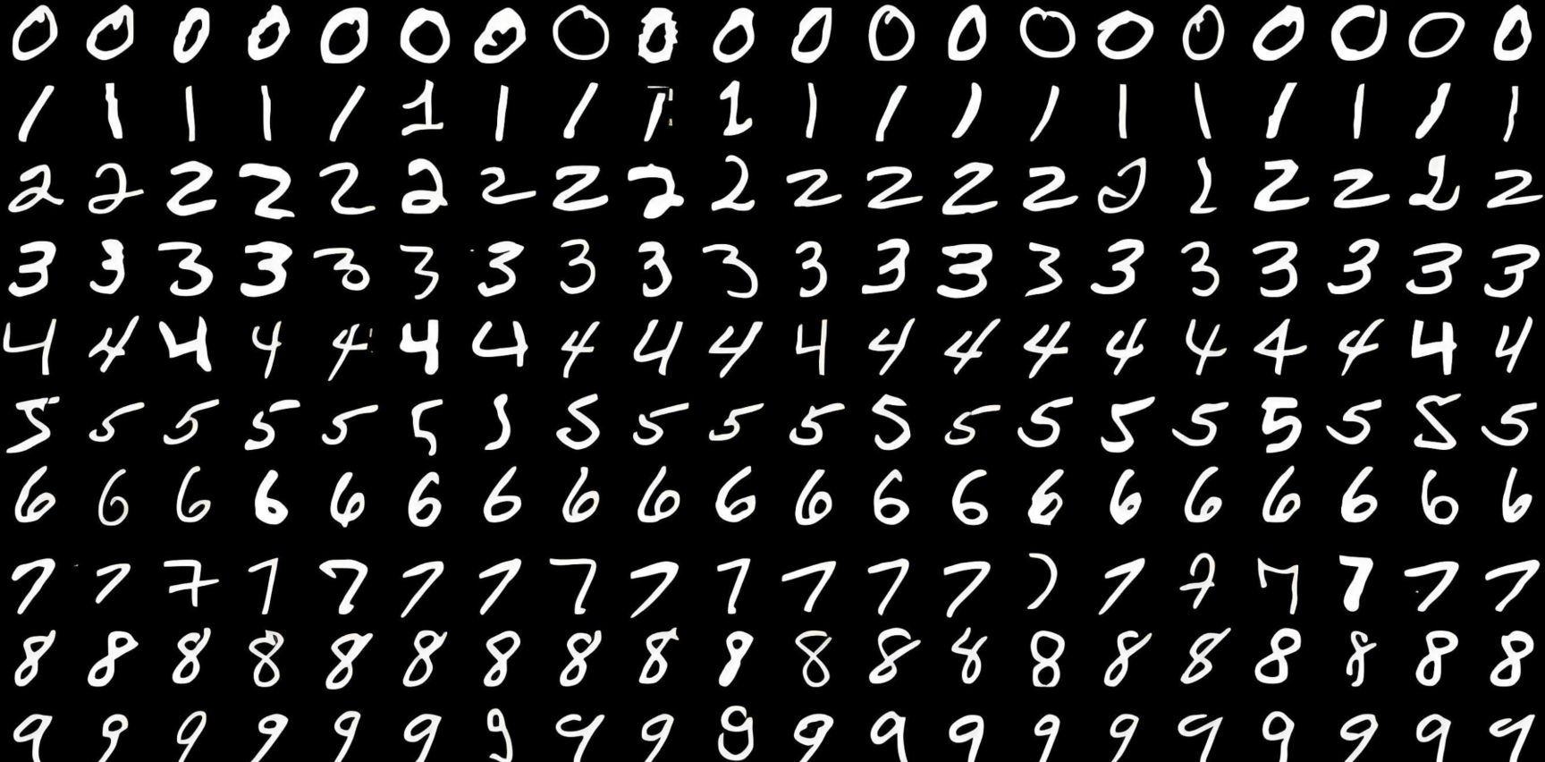 MNIST包含了70,000张手写数字的图像,每一张都是28x28像素的灰度图像,其中6万张用于训练,1万张用于测试,每张图像的内容只包含一个手写数字,从0到9的其中一个数字。