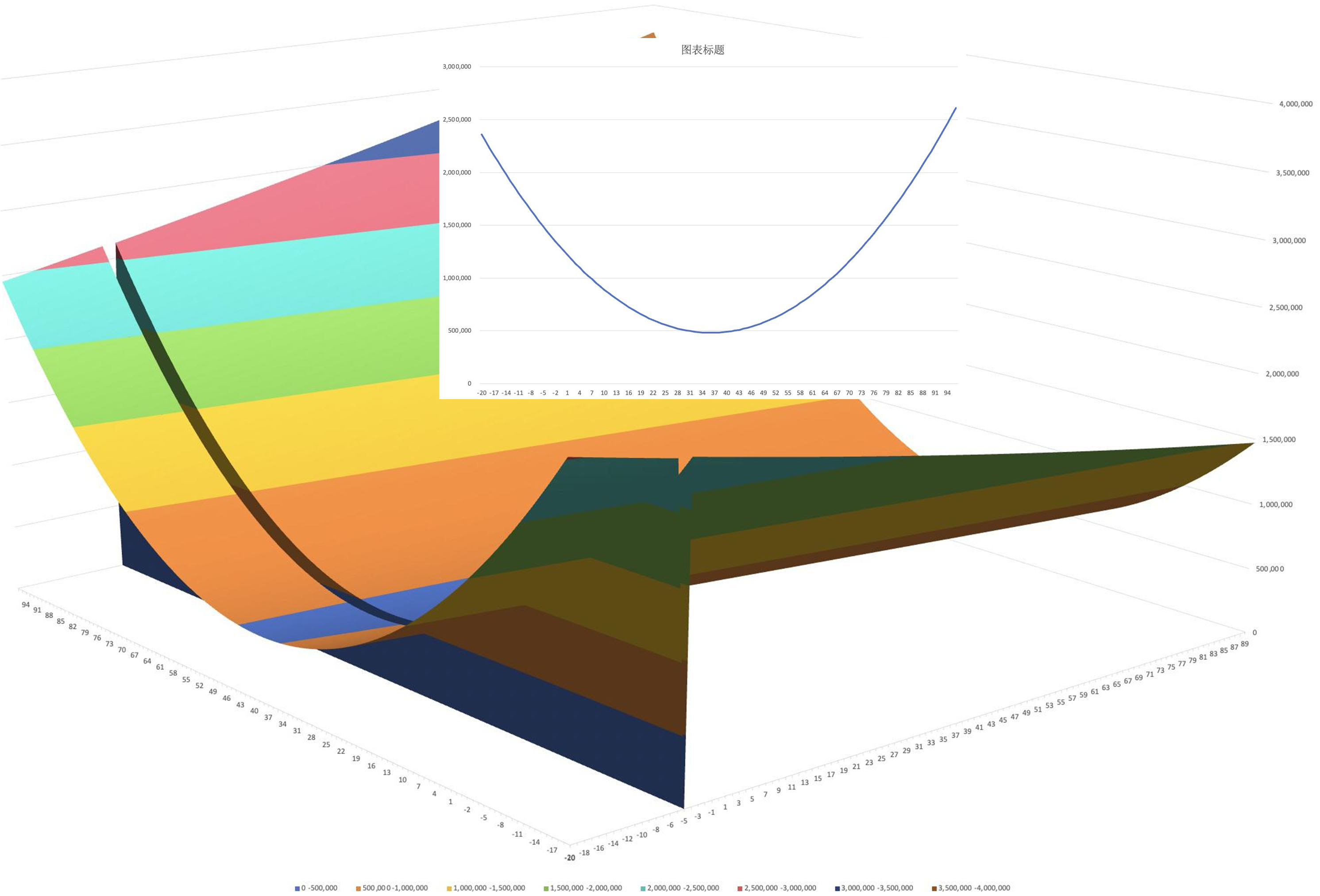在多维空间内找到最低点,就是最小总误差值,它的参数就是最优组合。