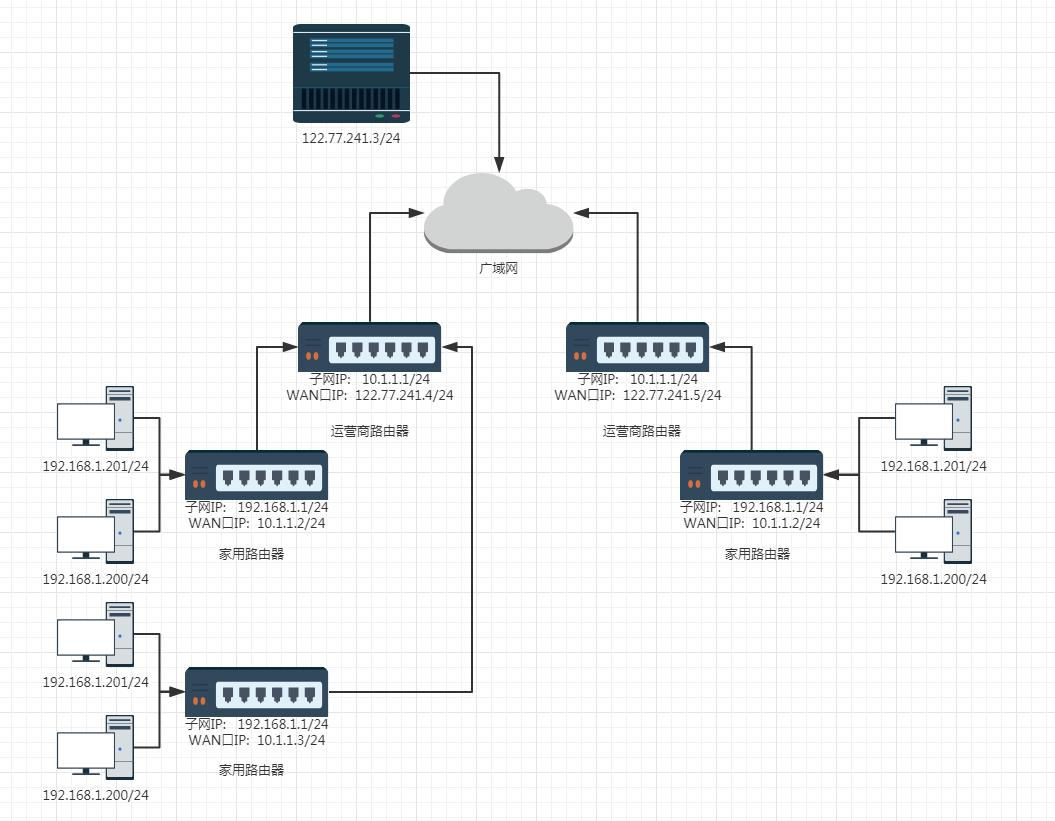 - 每一个家用路由器,其实又作为运营商路由器的子网中的一个节点,这样的运营商路由器可能会有很多级,最外层的运营商路由器,WAN 口 IP 就是一个公网 IP 了。