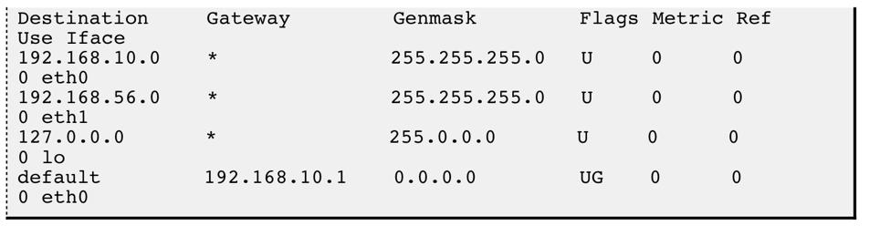 - 这台主机有两个网络接口,一个连到192.168.10.0/24,另一个网络接口连接到192.168.56.0/24网络。