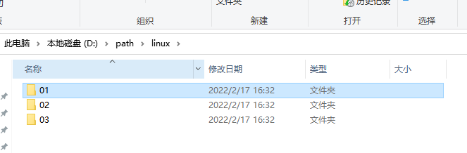 在D:\path\linux 创建 三个不同的文件夹