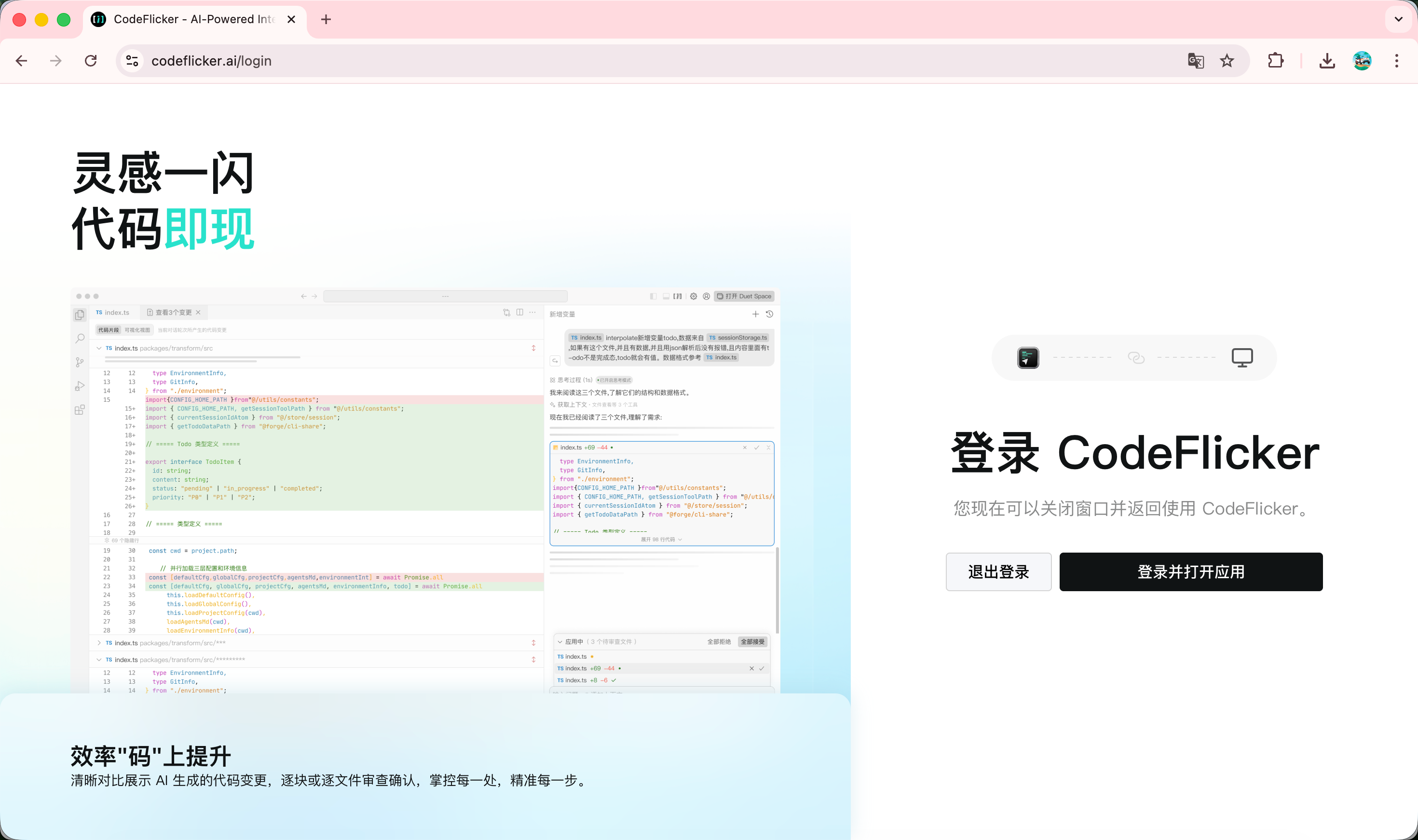 - CodeFlicker 产品官网 (产品介绍、下载入口、使用指南):