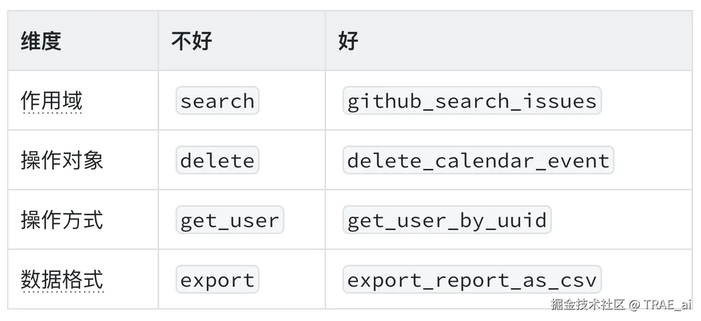 与人类开发者不同,Agent 不会跳过文档直接看代码。它会仔细分析你写的每一句描述,这意味着: