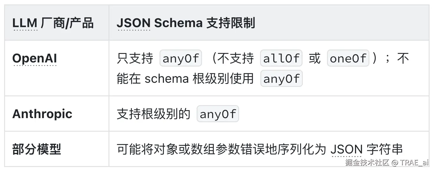 注意 arguments 是一个 JSON 字符串,LLM 本质上只是在「生成文本」,只不过这段文本遵循了特定的结构化格式,存在返回非法 JSON 格式的可能。