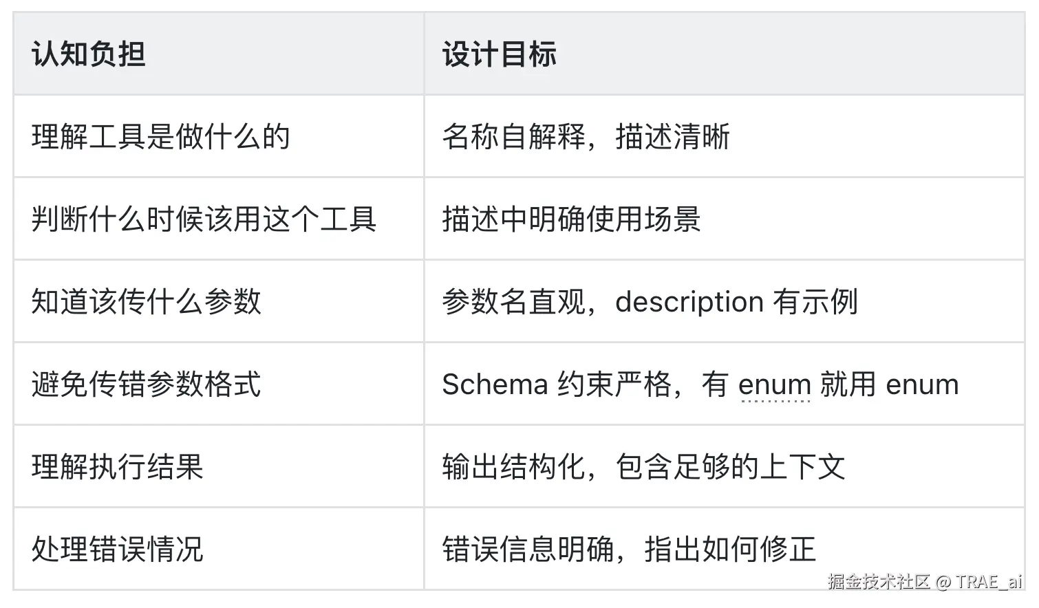 这意味着,给 Agent 开发工具的真正挑战不是技术实现,而是设计出 Agent 能用好的工具接口, 这也是我们在开发 TRAE 过程中一直在思考和解决的一个问题。