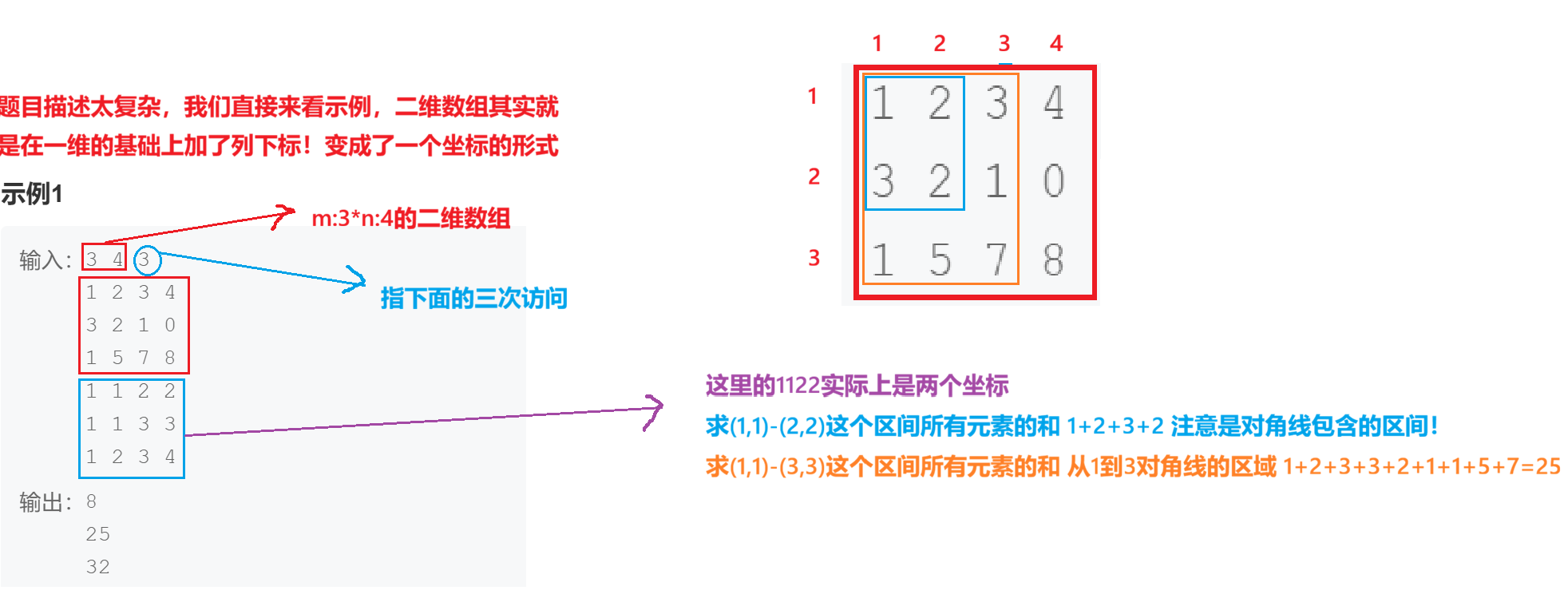 dp[i][j]=dp[i-1][j]+dp[i][j-1]-dp[i-1][j-1]+mat[i-1][j-1];