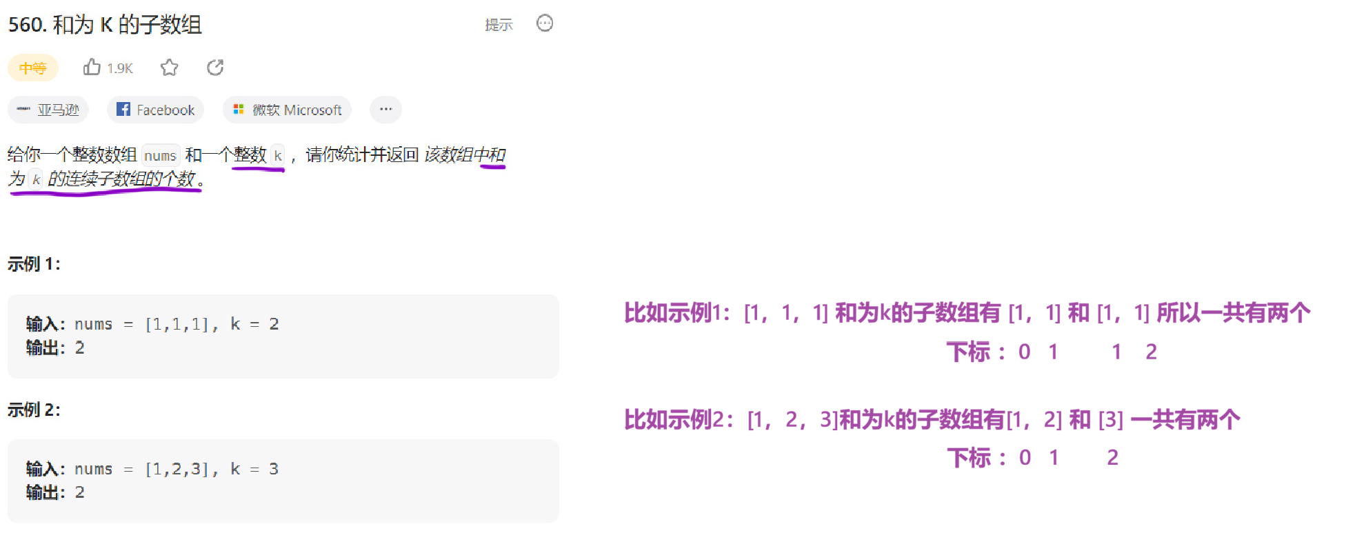 //此时判断一下 哈希表里有没有满足sum-k 的前缀和存在 有的话ret就加等于满足sum-k 所有前缀和的次数