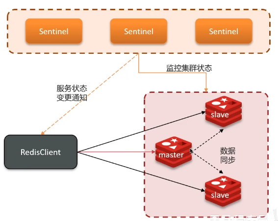 通知:Sentinel 充当 Redis 客户端的服务发现来源,当集群发生故障转移时,会将最新信息推送给 Redis 的客户端
