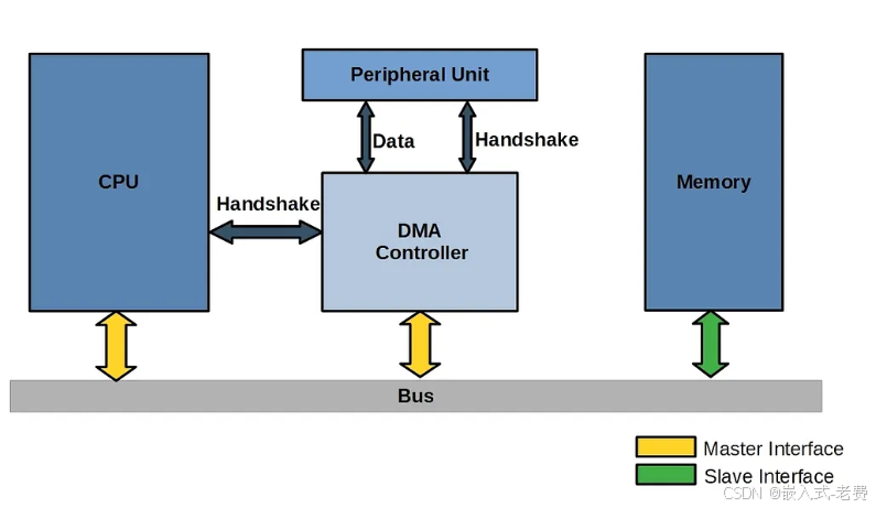 不管是soc,还是mcu、fpga,大部分系统都是采用master-slave的模式进行cpu数据处理的。这种模式虽然看上去比较简单,但是有一个致命的问题,那就是所有数据的搬运都是需要cpu来处理的。大部分时候,这种方式都是比较低效的。