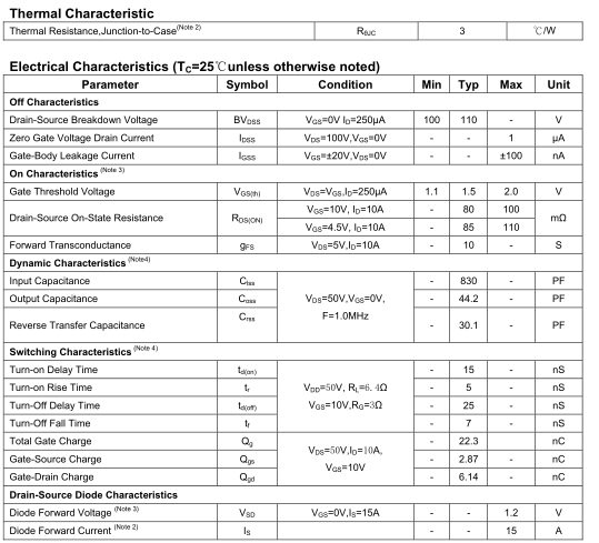 特性:采用沟槽工艺,低内阻、低栅电荷、开关速度快。