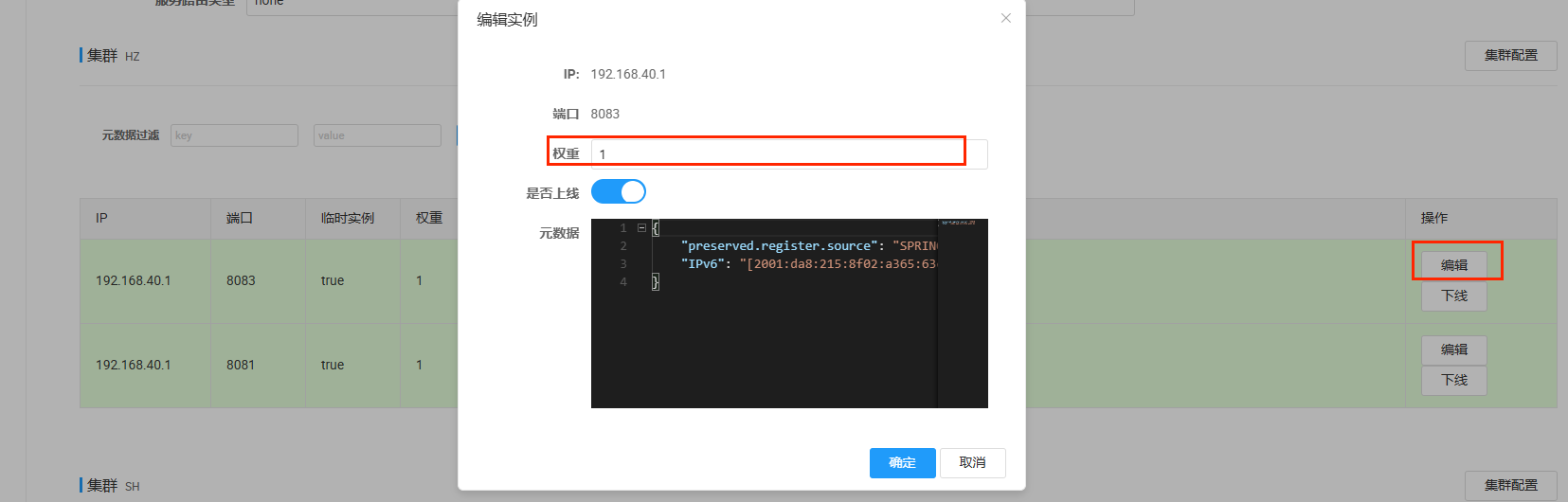 实际部署中会出现这样的场景: 服务器设备性能有差异,部分实例所在机器性能较好,另一些较差,我们希望性能好的机器承担更多的用户请求。 但默认情况下NacosRule是同集群内随机挑选,不会考虑机器的性能问题。 因此,Nacos提供了权重配置来控制访问频率,权重越大则访问频率越高。