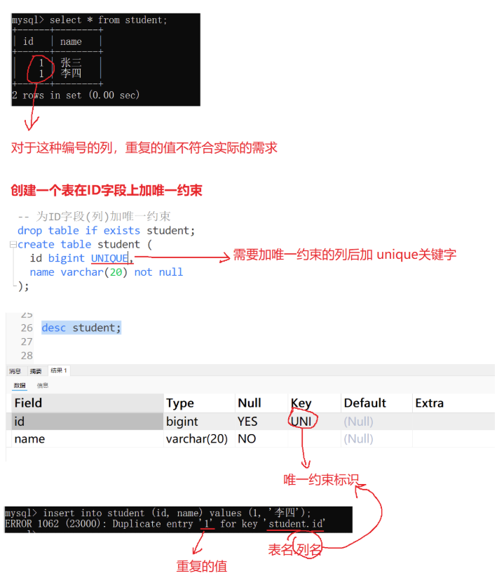 [5.3 UNIQUE 唯一约束](#5.3 UNIQUE 唯一约束)