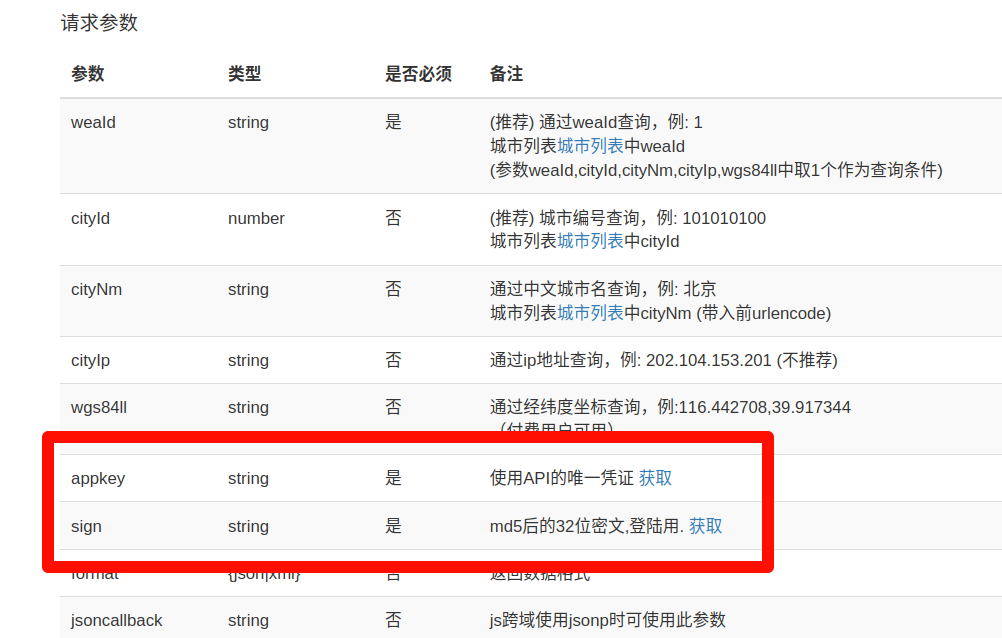 | 字段 | 实时天气接口 | 生活指数接口 |