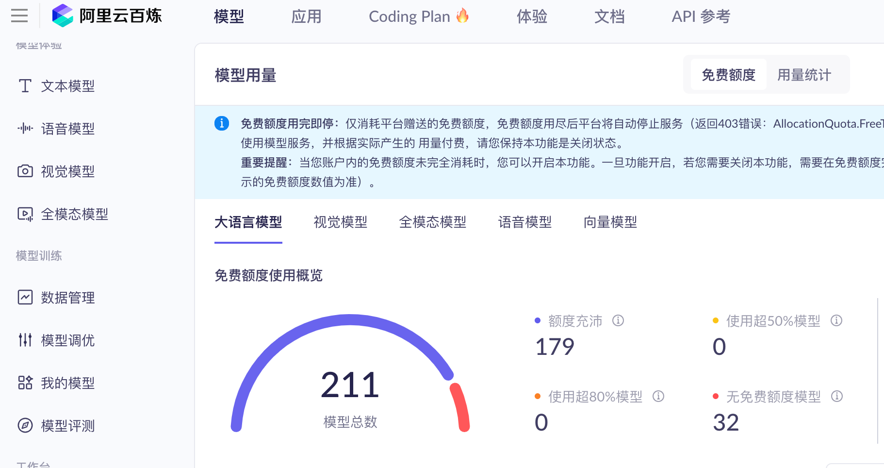 本文以配置阿里云百炼大模型为例(新用户有免费额度),