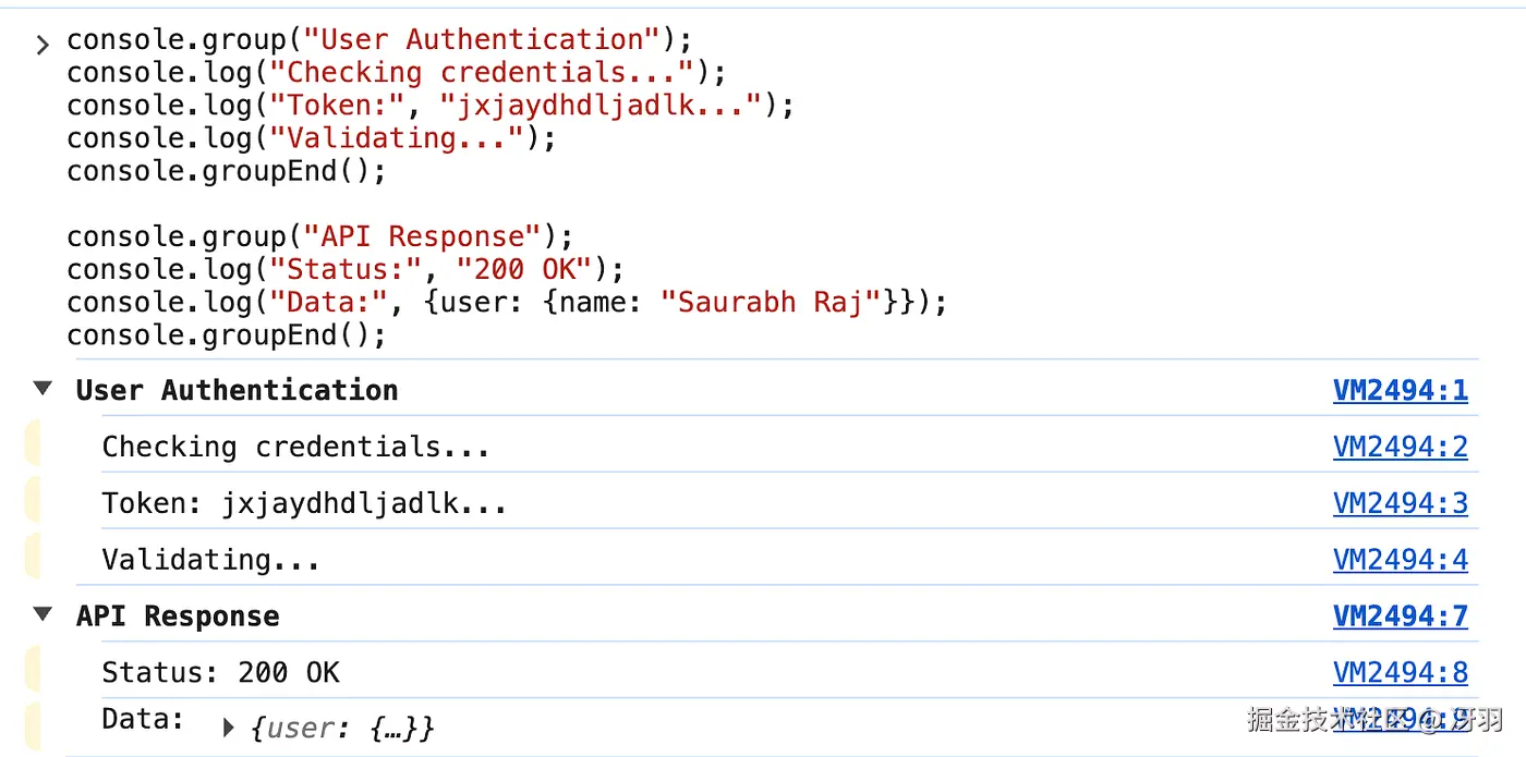 这会在控制台中创建可折叠的分组,让你在大量调试输出中导航变得更加容易。
