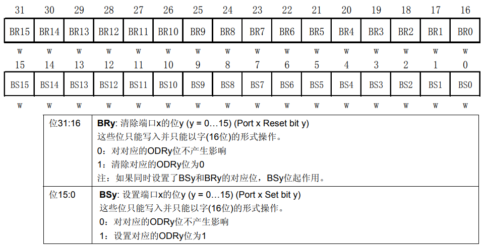 五、端口位设置/清除寄存器(GPIOx_BSRR)( Bit Setting/Reset Register)