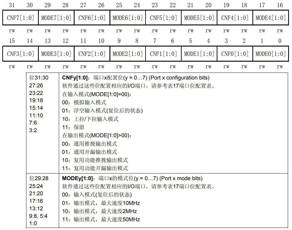 二、端口配置高寄存器(GPIOx_CRH)(Port Configuration Register High)