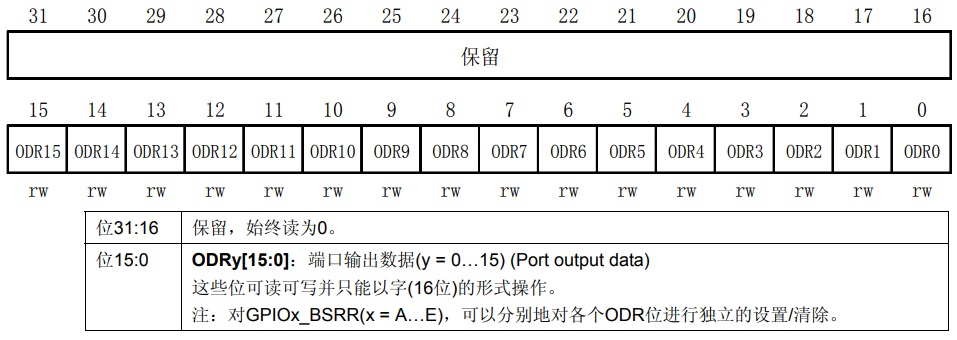 四、端口输出数据寄存器(GPIOx_ODR)(Output Data Register)