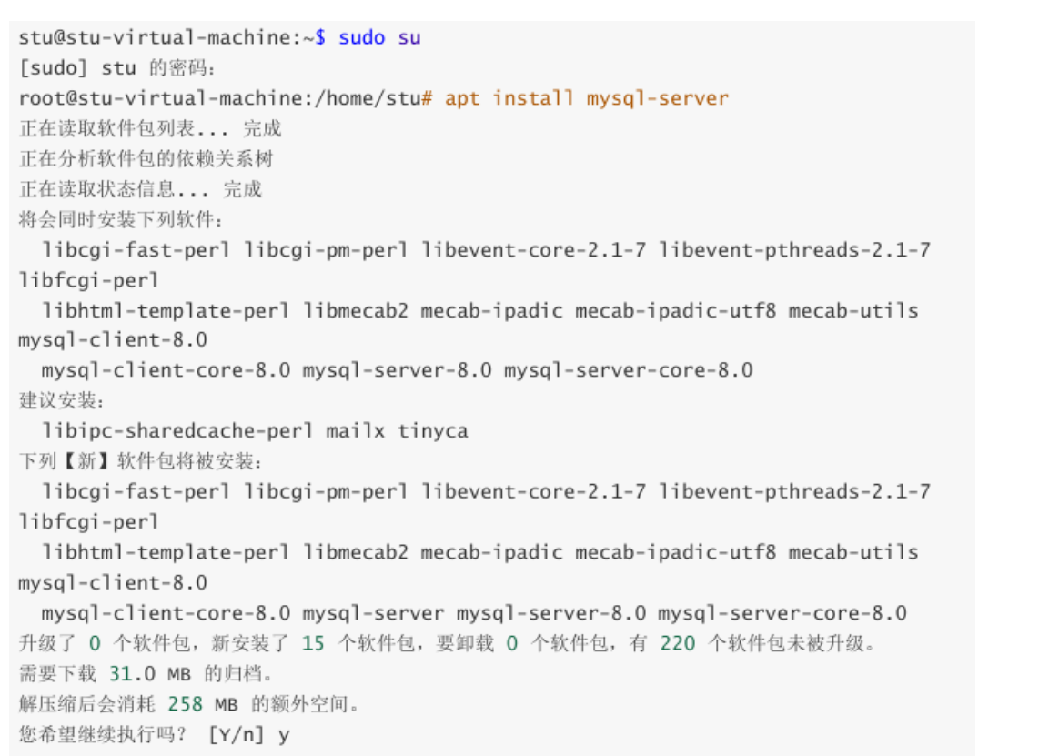 在ubuntu发行版本上使用apt命令安装mysql可以使用apt工具安装: