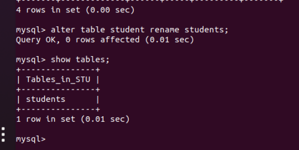 修改表的名字,使用 alter table 原表名 rename [to] 新表名; 其中to可以省略